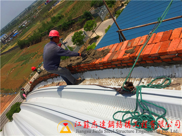 本文介紹了江蘇杰達鋼結構工程有限公司在安徽地區施工的一處30米跨度的拱形屋頂山墻壓頂工程,展示了磚混結構墻體施工的細節和工藝流程,反映了該類型工程在結構設計和施工中的實際應用。