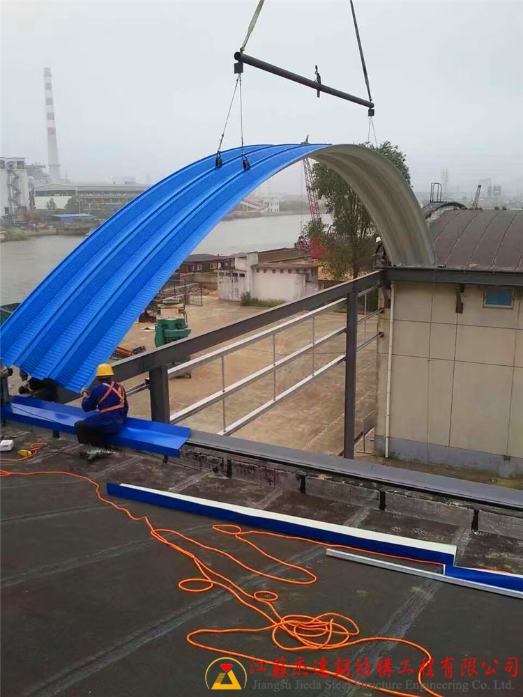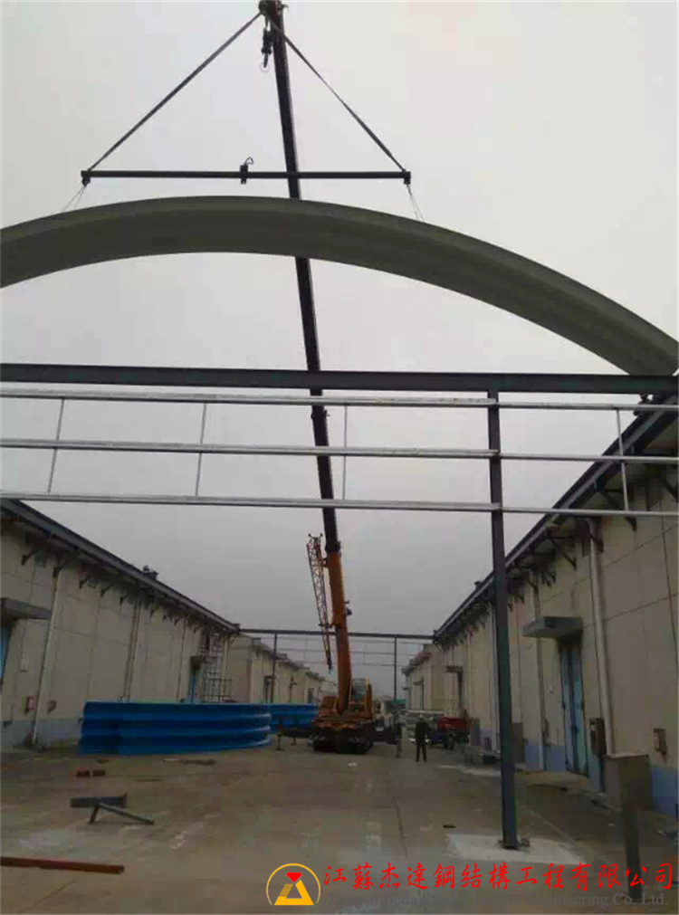 工程名稱:江蘇鹽城建湖拱形屋頂倉(cāng)間罩棚制作安裝工程
