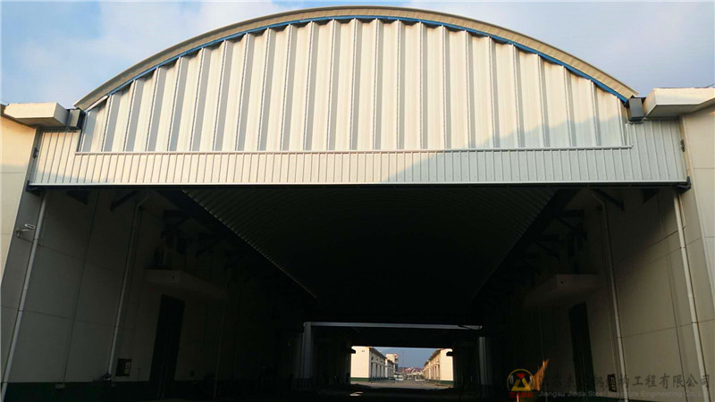 本工程位于江蘇連云港市中央儲(chǔ)備糧庫內(nèi),主要建設(shè)糧倉(cāng)間的拱形屋頂罩棚,采用優(yōu)質(zhì)彩涂卷材料,確保結(jié)構(gòu)穩(wěn)固和耐用。